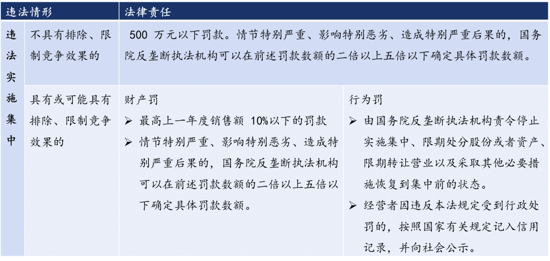 根据《反垄断法》及相关规定,经营者集中是指某一经营者通过合并、取得股权或资产、签订合同或设立合营企业的方式取得其他经营者的控制权或能够对其他经营者施加决定性影响的行为。如一项交易同时满足 “构成经营者集中”和“参与集中的经营者营业额达到申报标准”两项要件,则经营者应当事先向市场监督管理局申报,否则可能面临反垄断执法机构的调查和处罚。根据反垄断法相关规定,应依法申报而未申报的经营者面临如下处罚风险: