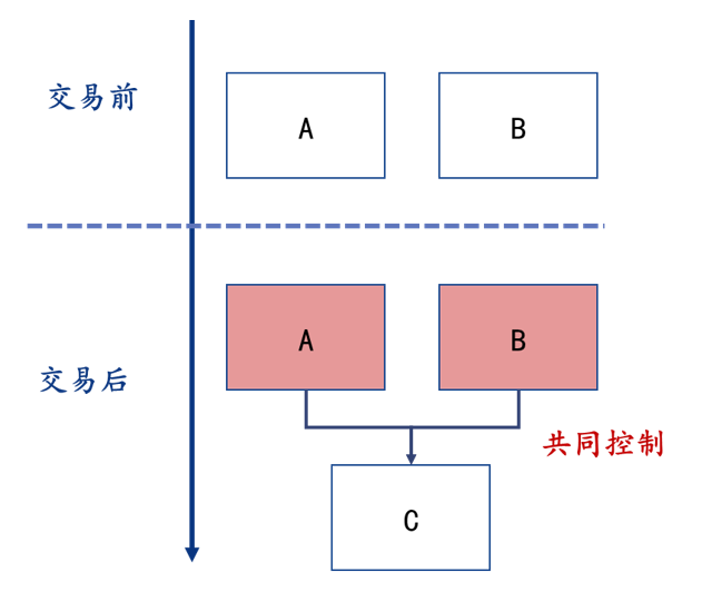 在B公司通过收购取得对C公司共同控制权的情形下,A公司与B公司构成参与集中的经营者。根据现行申报标准,如果A公司的最终控制人(简称“A集团”)与B公司的最终控制人(简称“B集团”)上一会计年度营业额均超过8亿元,并且A集团与B集团上一会计年度在中国境内的营业额总和超过40亿元或A集团与B集团上一会计年度全球营业额总和超过120亿元,则应当依法进行申报。