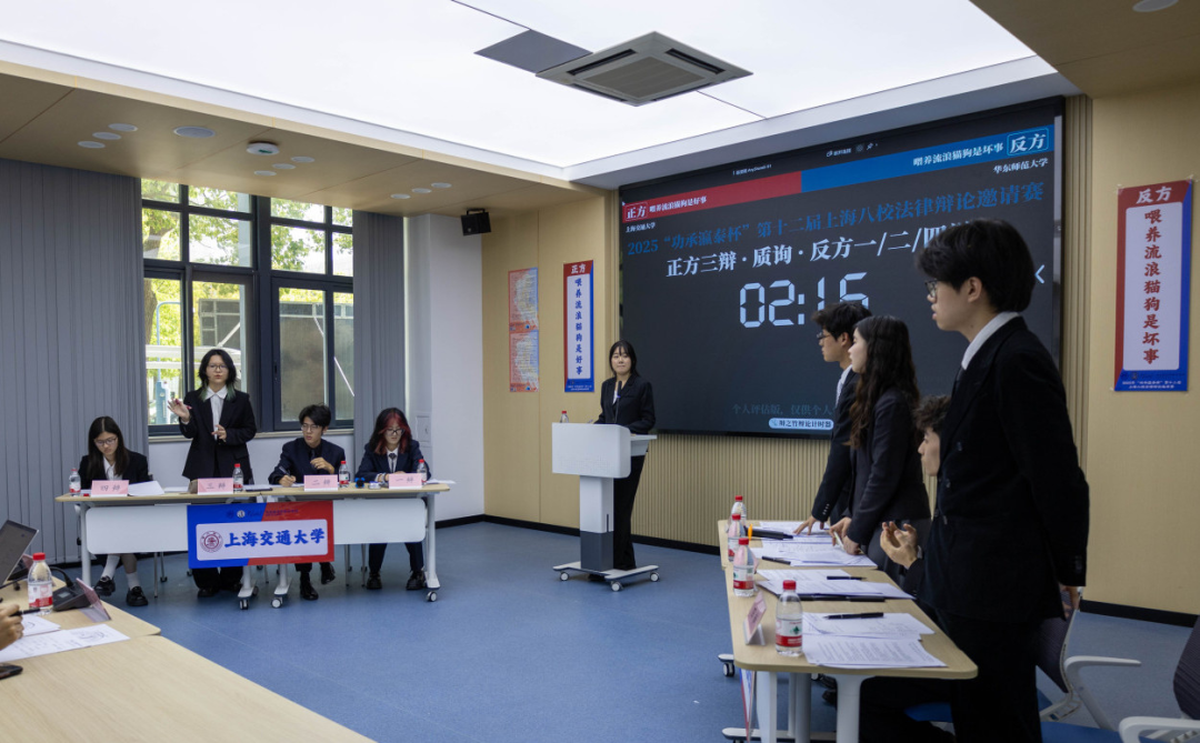 本次辩论围绕"喂养流浪猫狗是好事还是坏事"展开。正方(上海交大)主张该行为能减少人宠冲突、体现责任感;反方(华东师大)则指出其可能引发健康风险和法律问题。正反双方就社会治理、道德责任等维度展开激辩。正方强调社会价值,反方援引案例论证风险。质询环节双方攻防精彩,展现了高超的辩论技巧。