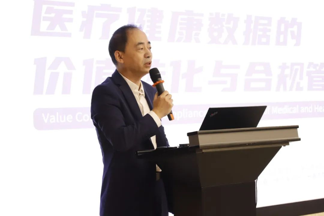 长春市信息中心主任助理李亚平代表指导单位发言,他指出,党的二十届三中全会提出 “数实融合” 战略,黄强书记在我省理论学习会议上也明确指出进一步深化改革,全方位推进数字吉林建设。医疗数据作为“第五生产要素”,其资源化、资产化、资本化的价值转化路径,将为智慧医疗体系建设提供核心支撑。为此,我们将紧抓机遇,以医疗数据合规流通为突破口,激活区域数字经济新增长极。