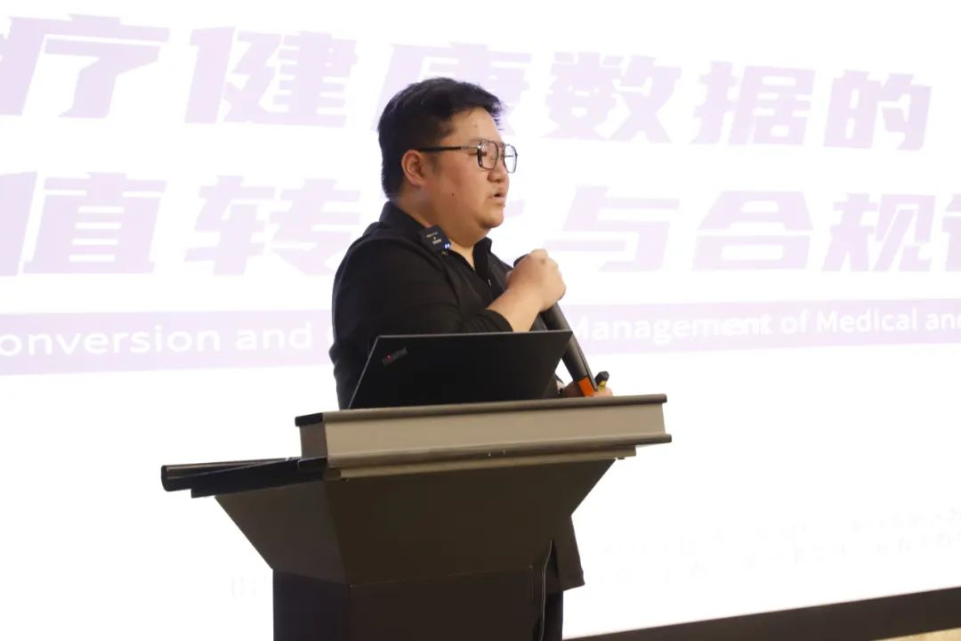 鉴于医疗数据的应用具有极强的科技成果转化价值,本次沙龙特别邀请到上海技术交易所数字科技有限公司总经理徐彦尧先生。上海技术交易所作为为各医疗单位的科技数据成果转化提供权益登记、成果评估、专利培育与推广及数据产品流通等服务的平台,在医疗数据流通及科技成果转化中发挥了重要作用。徐总以《医疗数据要素市场的建设及价值》为题,系统解析了数据要素作为新质生产力的核心地位。他提出,医疗数据价值释放需经历“资源化—资产化—资本化”三阶段,通过构建“可信数据空间+区块链存证+隐私计算”技术底座,可实现数据“可用不可见”的安全流通。