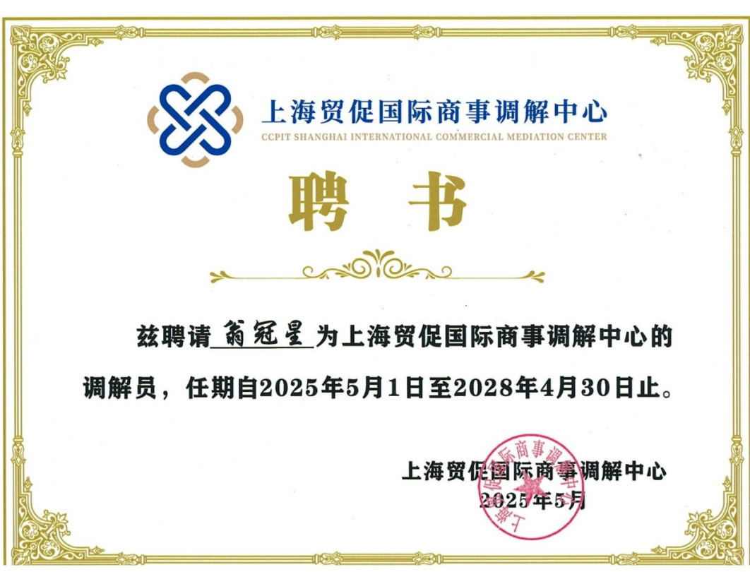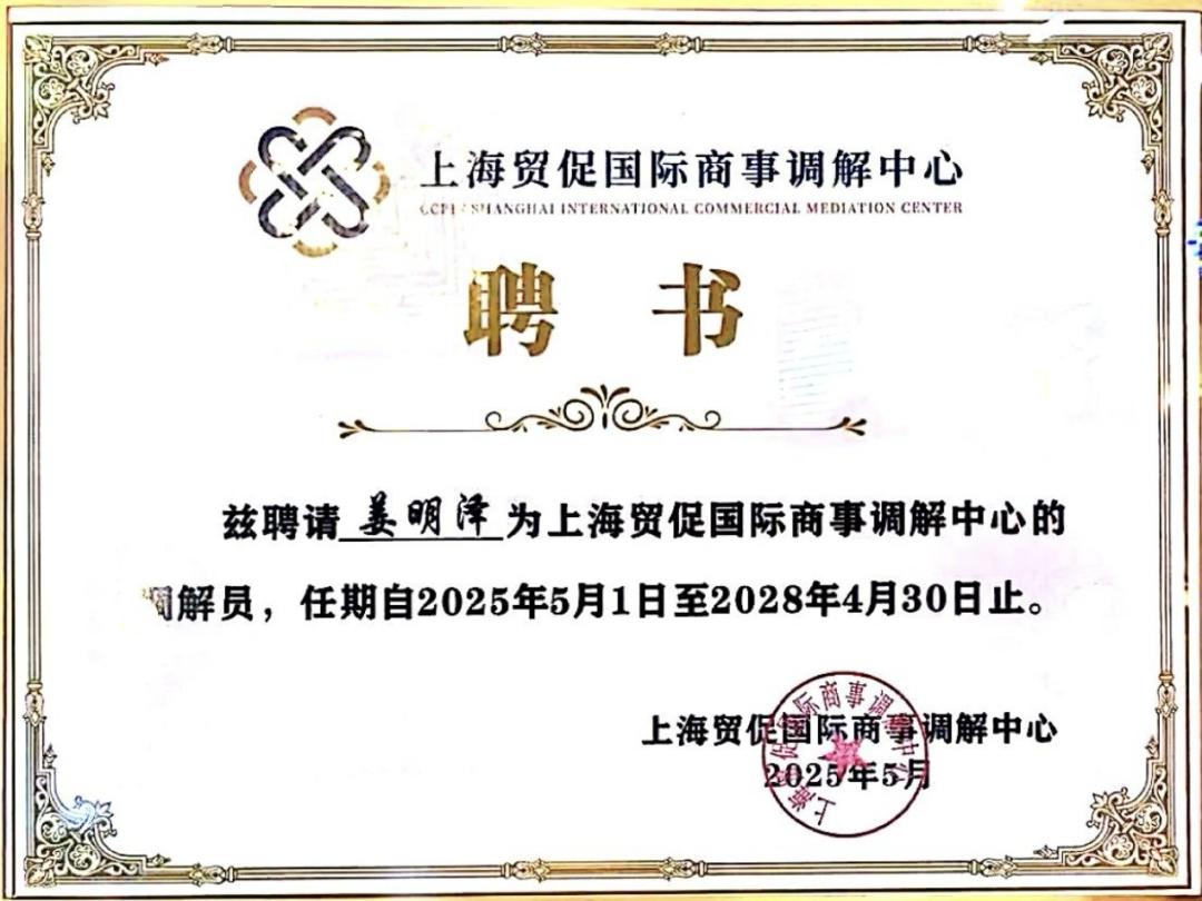 近日,上海贸促国际商事调解中心发布了2025新《调解员名册》,功承瀛泰律师事务所高级合伙人姜明泽律师,功承瀛泰临港办公室主任、合伙人翁冠星律师获聘。新名册共有来自20个国家和地区的调解员353人,强调接轨国际商事调解实践,贯彻将专业性和国际性融入到争议解决的理念中。