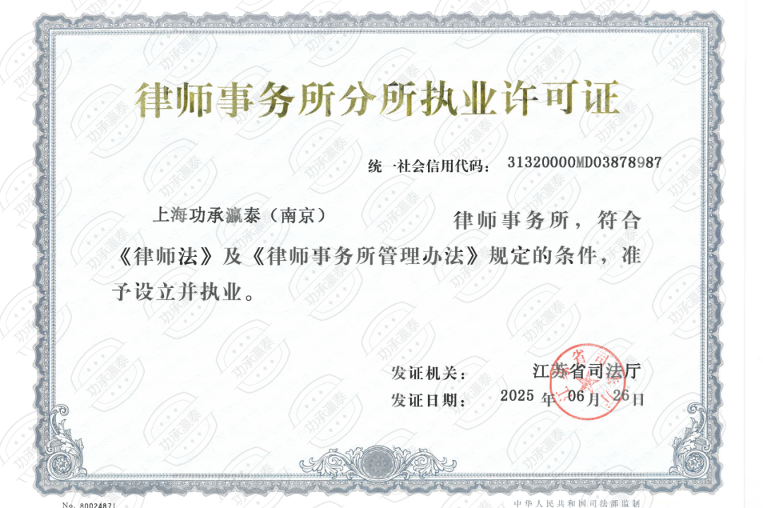 功承瀛泰律师事务所很高兴地宣布,本所南京办公室已正式获批设立。这一举措标志着律所在“全国化+国际化”双轮驱动战略下再迈坚实一步。
